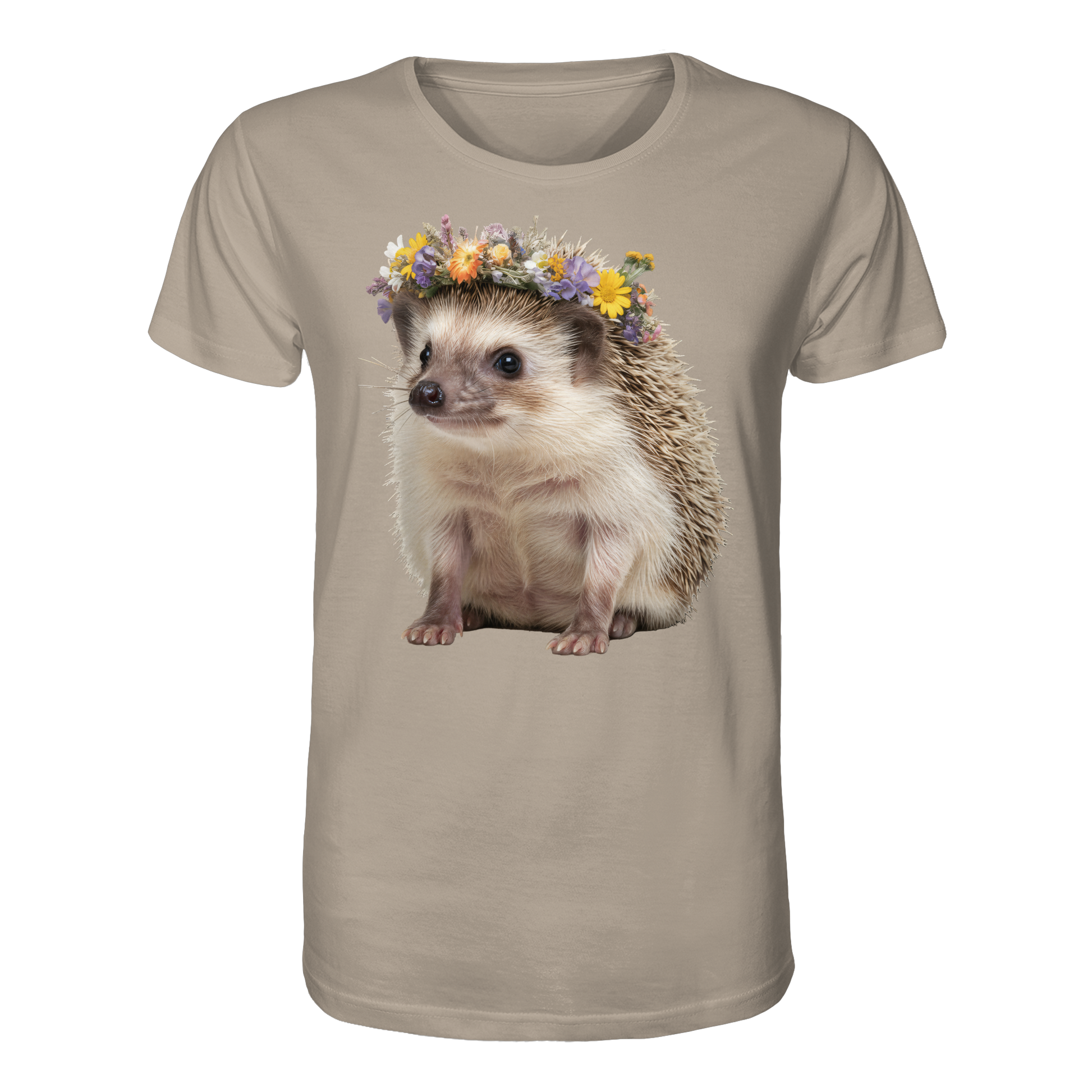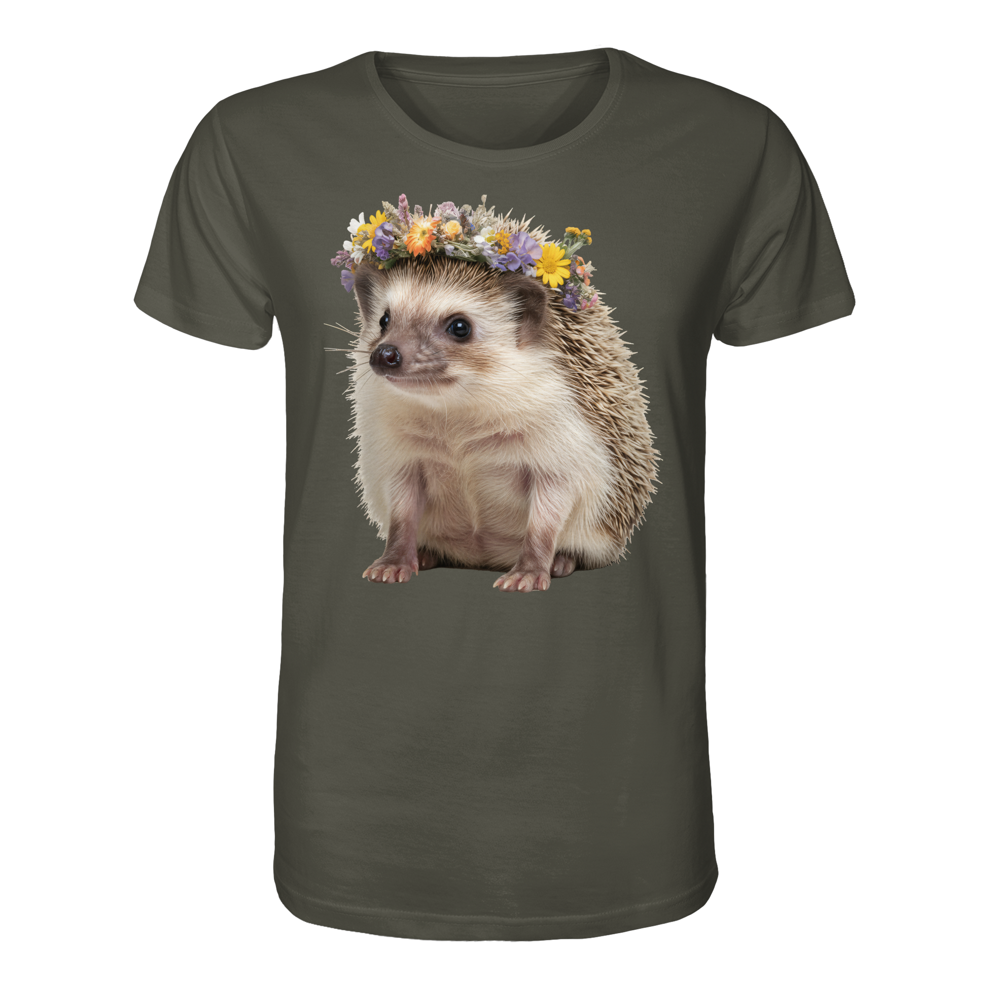 Entdecken Sie die Magie der Natur mit unserem "Igel - Organic Shirt"! Dieses limitierte T-Shirt vereint die Schönheit der Natur mit nachhaltiger Mode. Der niedliche Igel, geschmückt mit einem Blumenkranz, symbolisiert sanfte Stärke und natürliche Eleganz.